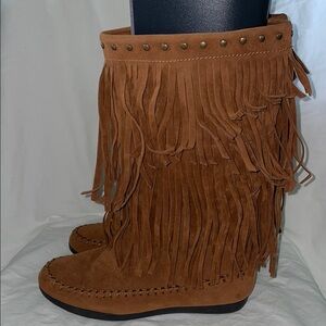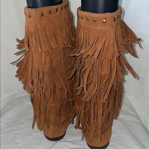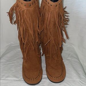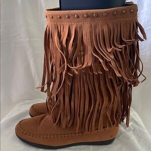Rampage Fringe Faux Suede Moccasin Style Tan Boots. Size 8.5.