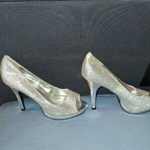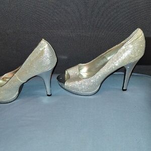Shimmer with these Rampage silver heels. Peep-toe design. Ideal for evening wear.