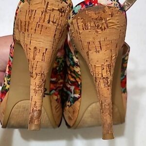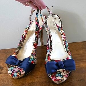 Rampage "Grayson" floral opentoe platform heels with Navy bow size 10.