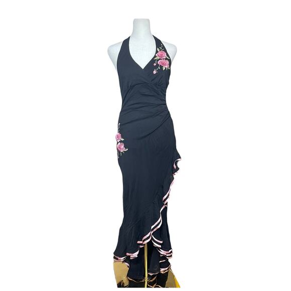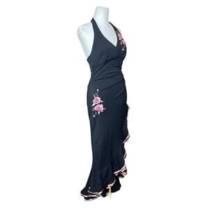 Rampage Halter Women's Dress Black Pink Size Medium Floral Fairy Pinup Girl Y2K
