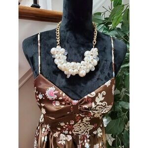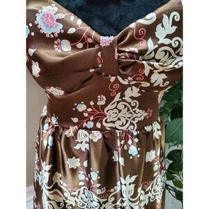 Ram Page Women Brown Polyester Sweetheart Neck Strappy Knee Length Dress Size 7