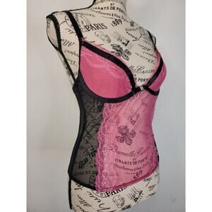 Rampage Lace Overlaid Corset Top SZ 34C Goth Ravewear Sheer Romantic Fairy Y2K
