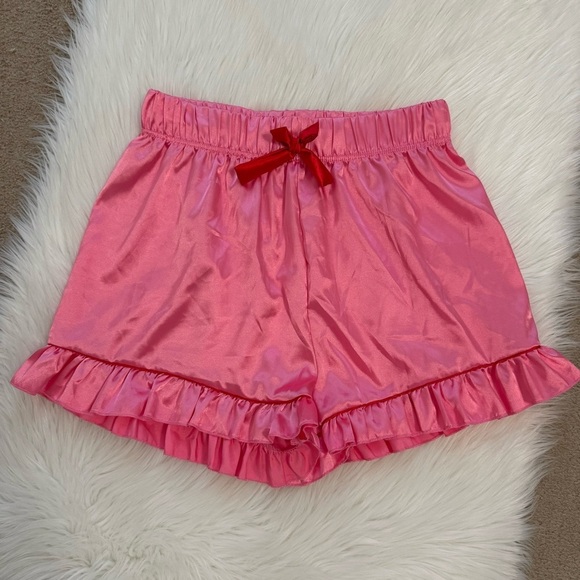 Rampage Pink Satin Ruffle Shorts with Red Bow Large