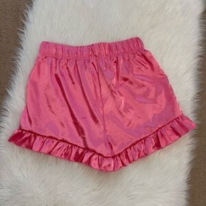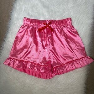 Rampage Pink Satin Ruffle Shorts with Red Bow