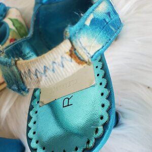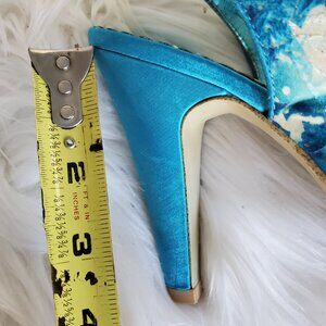 Rampage Primrose Blue Flower Print with Floral Embellishment Heels SZ 8