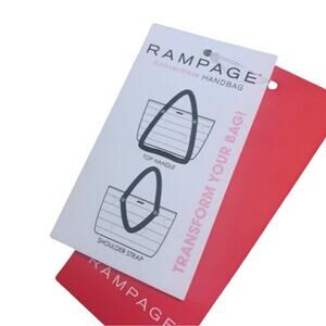Quilted convertible handbag by Rampage. The color is wine / maroon / burgundy. Soft material. It has black handles. It comes with 2 types of handles: top handles and shoulder strap. Gold and bronze hardware. Zipper closure. Interior has one zippered pocket and 2 pocket organizers for small essentials like your cellphone, makeup, etc. New with tags.