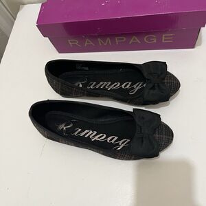 Rampage Ram Brice Black Gray Plaid Flats Bow Pointed Toe Slip On Womens 6.5M