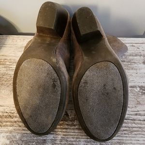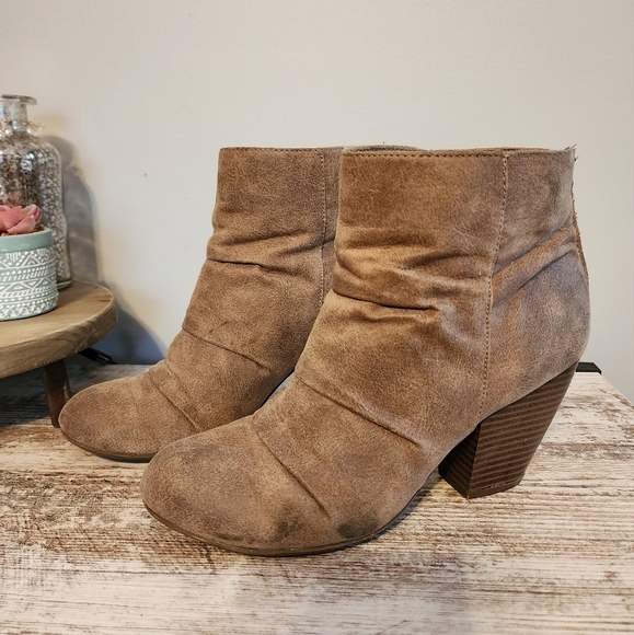 Rampage Ram-Tahoe doe colored ankle Booties. they have about a 3 inch stacked block heel with zipper at the back.