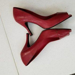 Rampage Red Peep Toe Pumps Some defects as shown in photos - normal wear but still lots of life left in them. 4 inch heels. Size 10