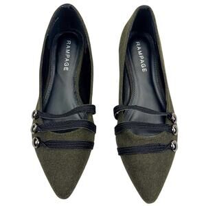 Rampage Safari Green Wool Strappy Button Pointed Toe Flats Sz 8.5 Comfort Trendy
