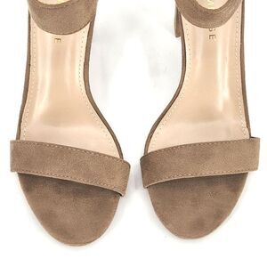 Rampage Dress Sandals Womens 10 Beige Ankle Strap Chunky Block Heels Faux Suede Neutral Dressy