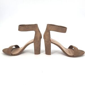 Rampage Dress Sandals Womens 10 Beige Ankle Strap Chunky Block Heels Faux Suede Neutral Dressy