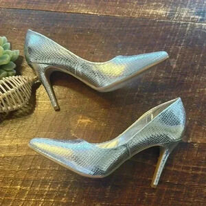 Rampage | “Selana” Silver Faux Leather Snake Print Embossed Pumps