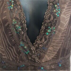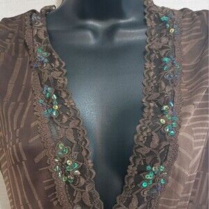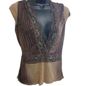 Rampage Shirt Large Y2K Vintage Brown Sleeveless Sheer Top with Sequin Details