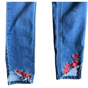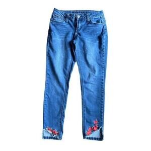 Rampage Skinny Jeans Size 5 Juniors Y2k Roses Embroidered Ankle Length Mid Rise