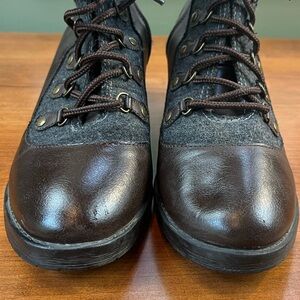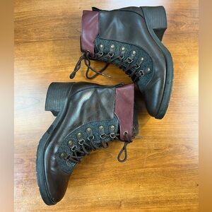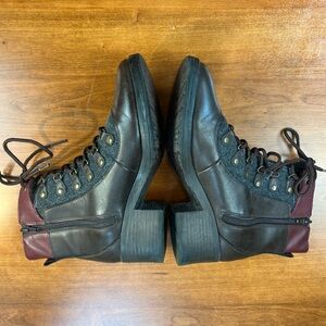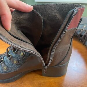 Rampage Steam Punk Faux Lace Up Zip Up Boots Black Gray Red Faux Fur Lining