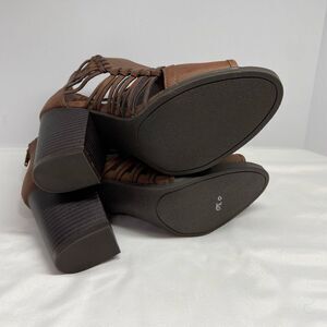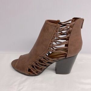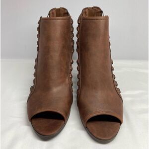 Rampage VIDA NWOB Brown Faux Leather Stacked Heels Ankle Booties 9.5