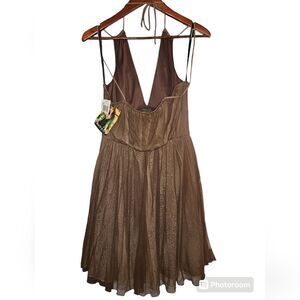 Rampage Spring Break Authentic Vintage Y2K Deadstock Brown Mesh Iridescent Sequin V-neck Halter Mini Short Dress Juniors - 7 NWT