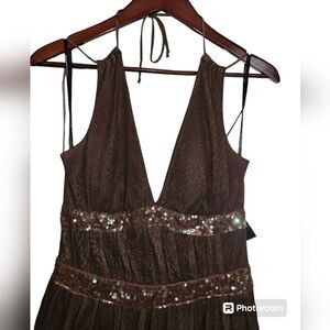 Rampage Vintage Y2K Deadstock Brown Mesh Sequin V neck Halter Dress Juniors 7