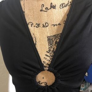 Rampage V-neck, keyhole front blouse, black and sleeveless, form fitting, size medium