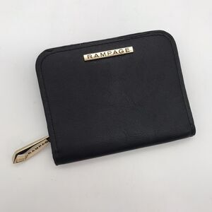 Rampage Womans Zip Around Black Logo Coin Purse. Snap Closure CC, Cash & ID. 7 Slide Pockets Wallet. Measures 4.75 x 4 inches. Bling Zipper tab.