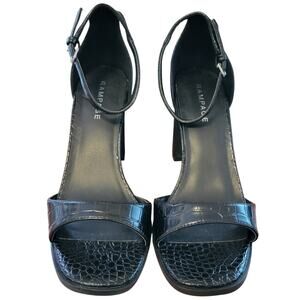 Rampage Women Block Heel Ankle Strap Sandals Size US 8.5M Black Snake Print