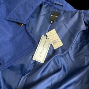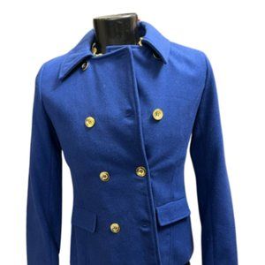 Women's Double Piah Peacoat it is a double breasted design with gold buttons and front pockets with flaps.100% polyester