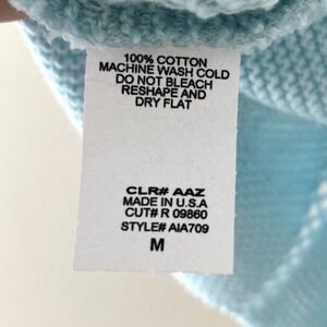 This beautiful light blue knit top is the perfect addition to a stylish spring wardrobe! This top is made of 100% cotton, is lightweight, and has gorgeous knit detail throughout. High collar and no sleeves. Women's size medium. Good/gently worn condition.
