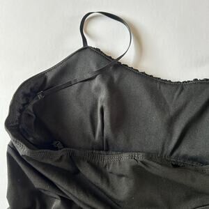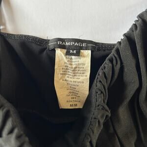 Rampage Womens Size Medium Black Y2K Babydoll Tank Top Embellished Rhinestone. 92% polyester and 8% spandex. It measures 15.5 inches from armpit to armpit and the length from shoulder to hem is about 27 inches. The straps are adjustable. A few of the rhinestones are loose, but in overall excellent condition.