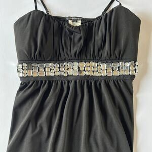 Rampage Womens Size Medium Black Y2K Babydoll Tank Top Embellished Rhinestone