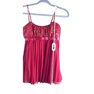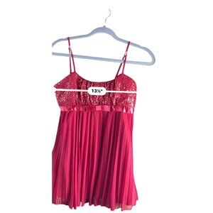 Rampage Womens Sleeveless Pleated Babydoll Top Red Sequin Medium Y2K Holiday