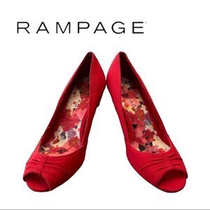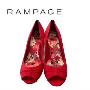 Rampage "Kayson" women's red, canvas, slip-on, peep toe wedges.