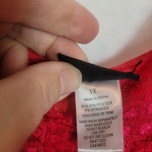 Rampage Y2K Babydoll Sheer Lace Trim Tunic Dress Women's 1X Red Silver Lingerie