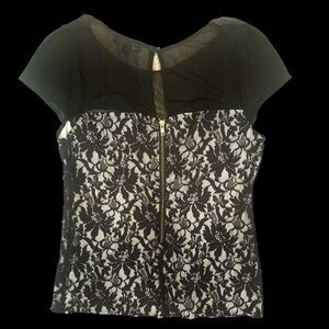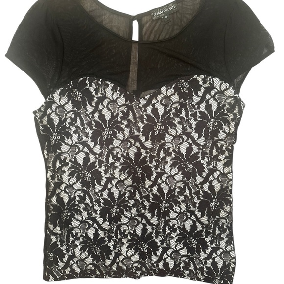 Rampage Y2K Blouse Unconventional Lace Sheer Top Gold Zip Sz M Whimsigoth Fairy