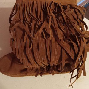 Rampage branded Suede Fringed Moccassin style Memory Foam Boots size 8.5 M