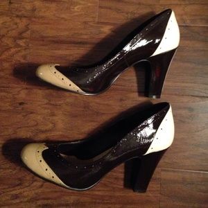 Rampage brown, tan, & cream wing tip pumps! I don't think I've ever actually warn these! Great work pumps but I forgot about them in the back of my closet and don't have anything to go with them. 3 inch heels...such a steal!!!