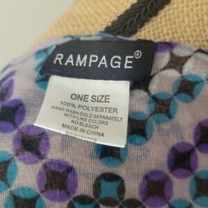 Rampage circle scarf, black, purple & blue geometric pattern. Has a couple pinholes but they aren't noticeable unless you go looking for it