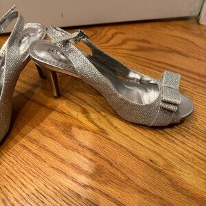 Women’s silver sparkly heel with bow detail. Super cute, size 6! EUC!!!