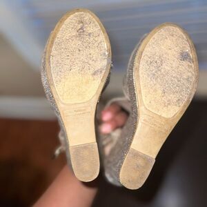 Wore for graduation once. Unfortunately, had to walk in red dirt so there is some slight marks at the foot part of shoe. Has wear. Can send more photos and videos if needed.