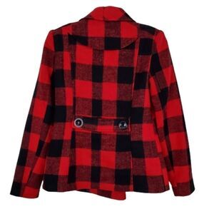 Rampage Buffalo Plaid Jacket. Large black buttons. Double Breasted. Slant pockets. Lined. Back belt detail. Excellent condition.