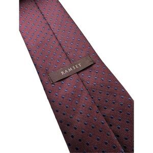 Ramsey Swiss Dot 59" x 3.25" Polyester Hand Made Burgundy Dot Necktie Tie. This is in excellent like New condition. Beautifully hand tailored Necktie. Tip to tip 59” length. Width 3.25”. No known rips, tears, holes, stains or defects.