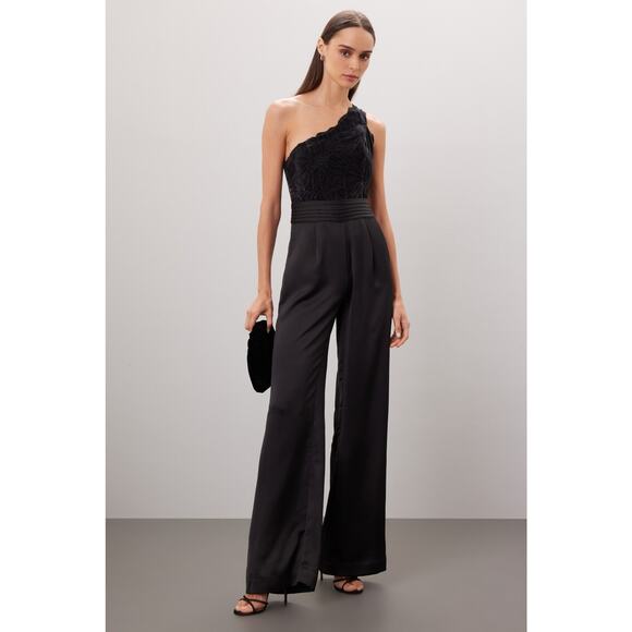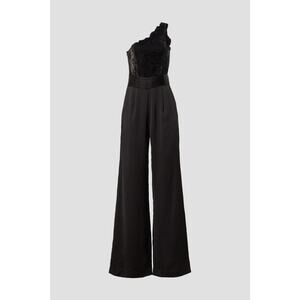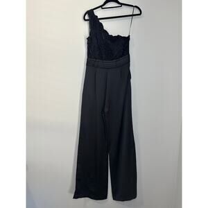 Ramy Brook Adaline Jumpsuit Size 8 Wide Leg, Lace Top One Shoulder