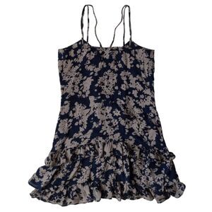 Ramy Brook Ashton Navy Blue and Tan Silk Ruffled Above Knee Dress Women's Small