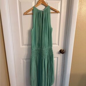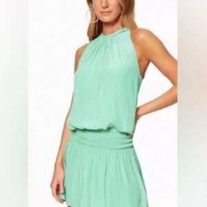 Chic mint green mini dress by Ramy Brook. Features a halter neckline and gathered waist. Perfect for stylish outings.