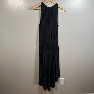 Ramy Brook Audrey Smocked Midi Dress Size Small Black Halter Neck Event