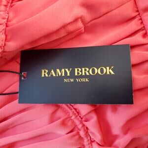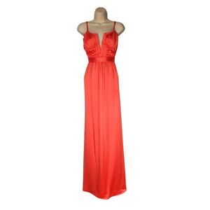 Ramy Brook Becky Gown Plunge Neck Satin Slit Maxi Dress Guava Pink Coral Size 4