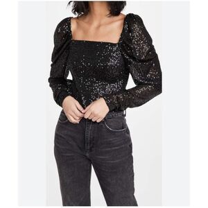 Ramy Brook Black Sequin Square Neck Puff Sleeve Long Sleeve Size 10 MSRP $325