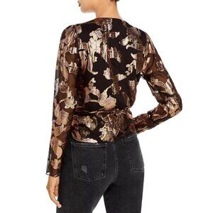 Ramy Brook Black and Gold Floral Wrap Blouse