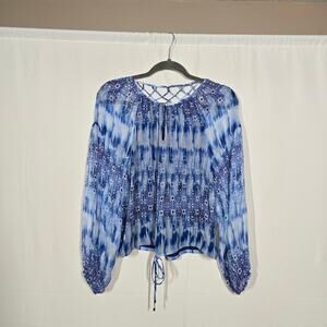 Ramy Brook Blue Tie-Dye Malia Macramé-Back Silk Top