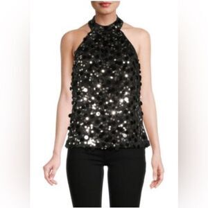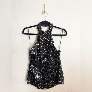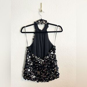 Ramy Brook Bri black and silver sequins halter top NWT. XS